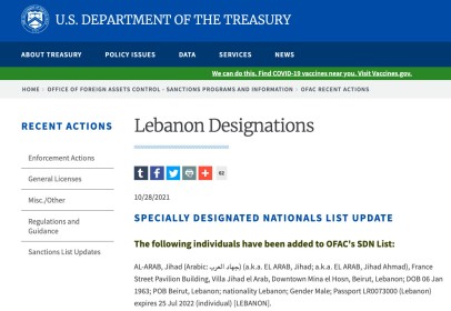 أكدت المتحدثة الإقليمية باسم وزارة الخارجية الأميركية جيرالدين غرفيث أن العقوبات الاميركية المفروضة على النائب جميل السيد ورجلي الاعمال داني خوري وجهاد العرب رسالة واضحة مفادها أن الولايات المتحدة ستستهدف الفساد في لبنان، مشددة على أن الولايات المتحدة تسعى لتعزيز المساءلة والمحاسبة والوقوف إلى جانب الشعب اللبناني في مطالبتاهم بوجود حكومة ملتزمة بالقيام بواجباتها وقادرة على اتخاذ الخطوات الجذرية والمطلوبة لمعالجة الصعوبات التي يواجهها لبنان مثل نقص المياه والكهرباء وغيرها من الصعوبات.